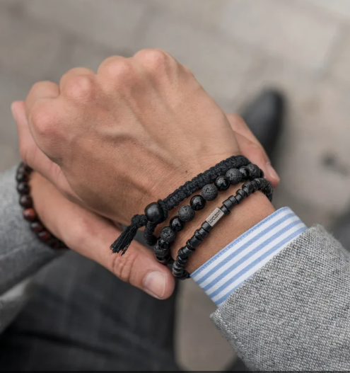 Un trio di braccialetti coordinati di colore nero indossabili singolarmente o insieme. Abbinabili con un ampio numero di outfit.